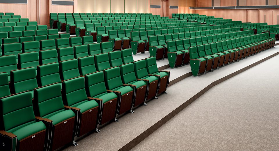 • 適用在禮堂、影劇院、會(huì)堂、報(bào)告廳等場(chǎng)所,在開會(huì)和看演出時(shí)應(yīng)有良好的視線,應(yīng)便于維修和清掃,使用時(shí)應(yīng)舒適,使人不易疲勞。根據(jù)使用和現(xiàn)場(chǎng)的設(shè)計(jì)需要,會(huì)堂的座椅需要放置文件和供記錄用的書寫板,特殊的會(huì)堂還要求考慮與同聲翻譯設(shè)備和表決、發(fā)言設(shè)備相結(jié)合。查看產(chǎn)品